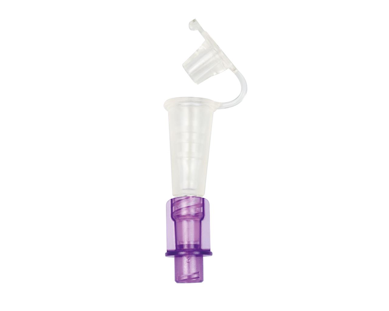Nutricair™ enterale ENFit è un adattatore con un imbuto con tappo e un connettore ENFit femmina.
