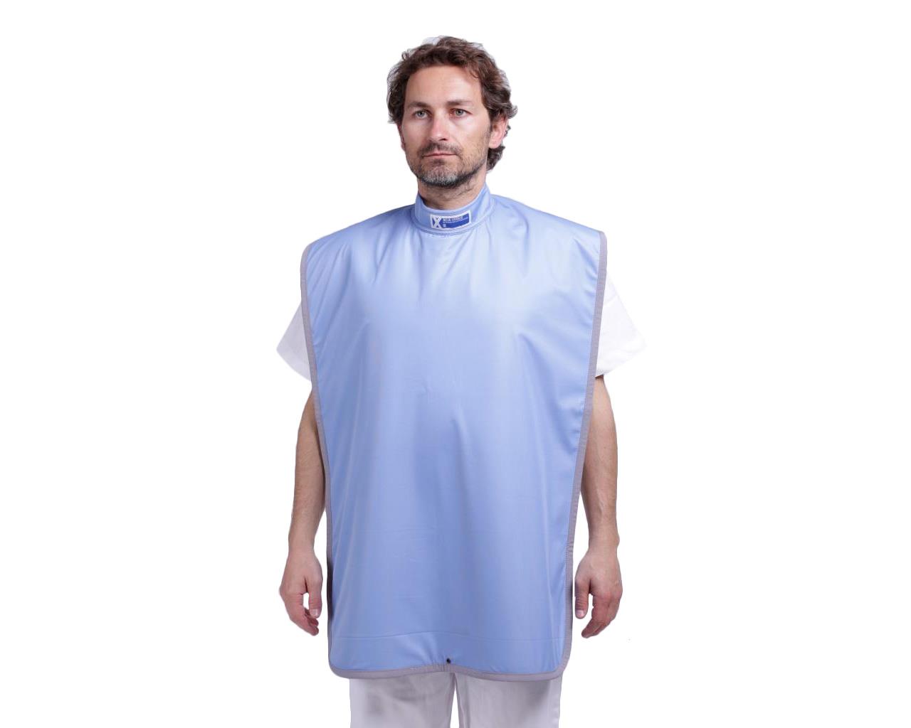 Mantella odontoiatrica radioprotettiva composta da una parte anteriore e un collarino regolabile con bottoni a pressione. Il capo è interamente bordato con nastro tipo “gros” e presenta l’etichettatura prevista dalla normativa di riferimento, codice a barre e TAG RFID per la sua rintracciabilità. Cuciture con filato in poliestere ad alta tenacità. Etichetta X-SO Versus sul collarino esterno cucita sui 4 lati.