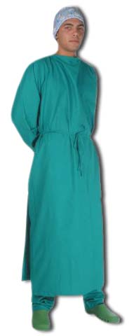 Camice operatorio prodotto in Italia in cotone 100%, marcato secondo le direttive CEE 93/42. Lavabile in lavatrice a 90° fino a 80 lavaggi.
