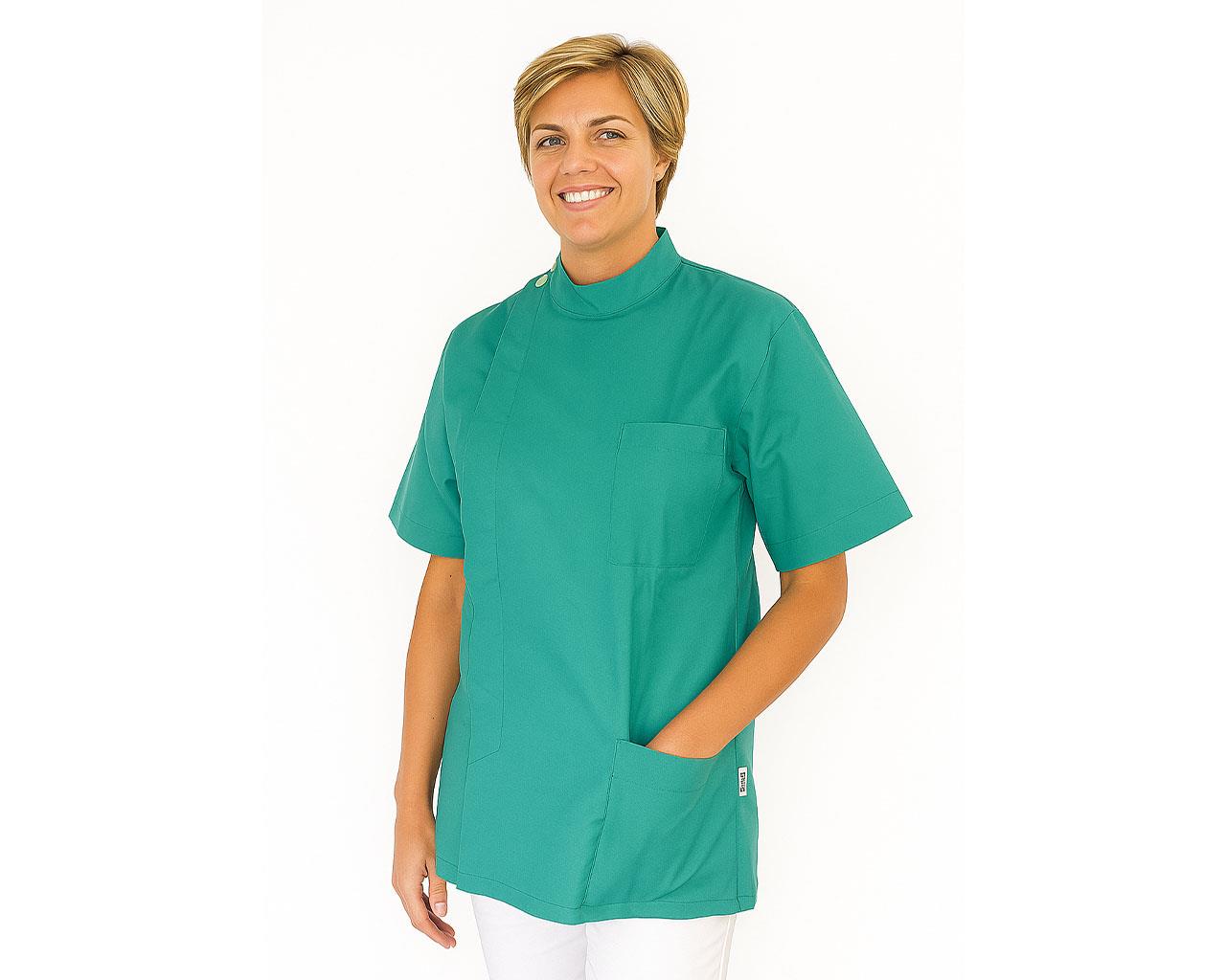 Casacca con collo alla coreana 100% puro cotone con 2 bottoni sulla spalla destra, 5 bottoni non visibili e 2 tasche a sinistra (una in alto ed una in basso).